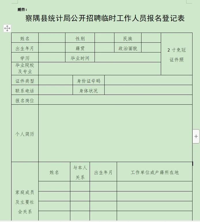 附件:察隅县统计局公开招聘临时工作人员报名登记表